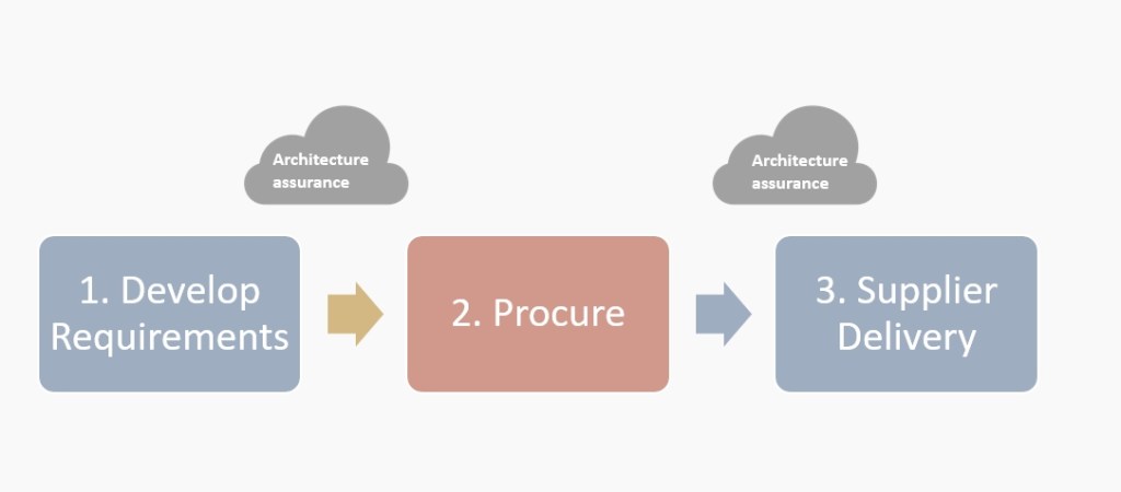 In this process, there is only peripheral “Architecture Assurance” during procurement – hopefully more during delivery.